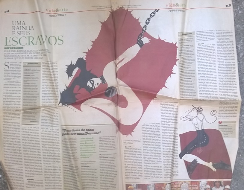 Um dia depois da festa, Amanda estava tensa, praticamente sem dormir, obrigada a trabalhar logo cedo no sex shop. Calhou de Luciano, jornalista paulista, 42 anos, estar livre no dia. edgeh {RF}, seu nick, é escravo da Rainha Frágil. Além disso possui uma escrava, é um switcher, ou seja, ora masoquista, ora sádico. É como se Luciano vivesse três papéis. Três, porque ele também possui um casamento que poderia se chamar de “baunilha”. “Minha mulher sabe que gosto e que pratico. E optou por ignorar o assunto – basta que eu não deixe mostras de nada, e tudo bem. Ou seja, é uma liberdade consentida. E como ela não suporta nem a idéia de sexo não-convencional, ficamos assim: faço as minhas coisas e evito que ela fique sabendo, embora ela tenha conhecimento disso”, explica por e-mail.