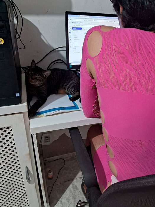 Tem uma menina muito bacana que nos ajuda de dia.